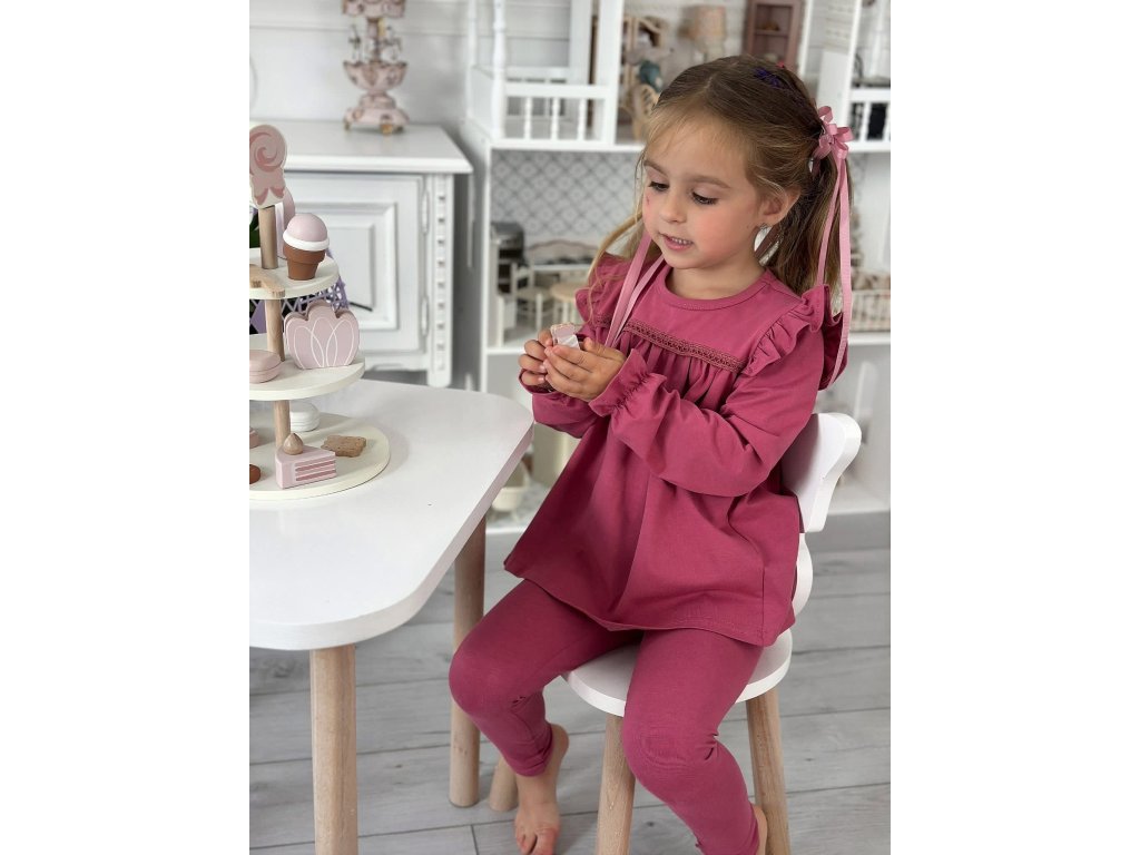 Dokonalá súprava pre dievčatká pre dievčatká. Tričko okolo krku zdobené bavlnenou krajkou, rukáviky sú zakončené gumičkou, ktorá netlačí. Kompletík skvele dopĺňajú legínky v...