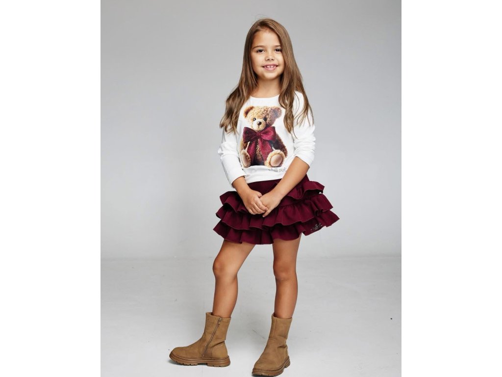 Krémové bavlnené tričko dlhý rukáv - medvedík