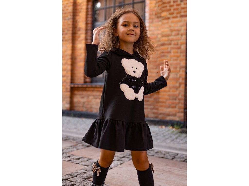 Čierne šaty s medvedíkom 3D