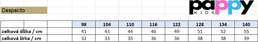 Oblečenie merané naplocho, chyba môže byť 1-2 cm