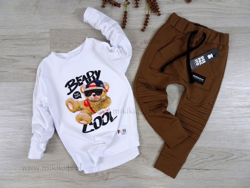 FUN kids biele tričko dlhý rukáv - cool medveď