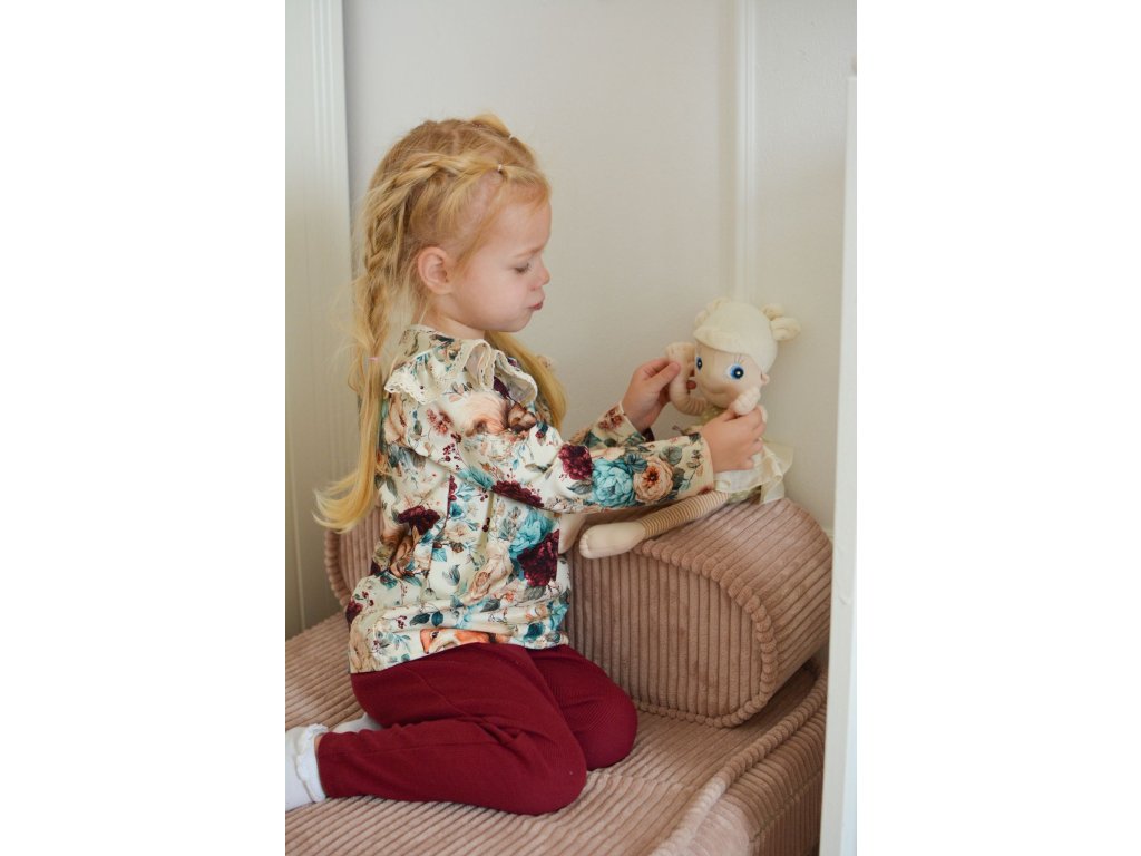 Bavlnené tričko z hadnmade dielne s potlačou veveričky a kvetov s čipkovanými volánikmi.