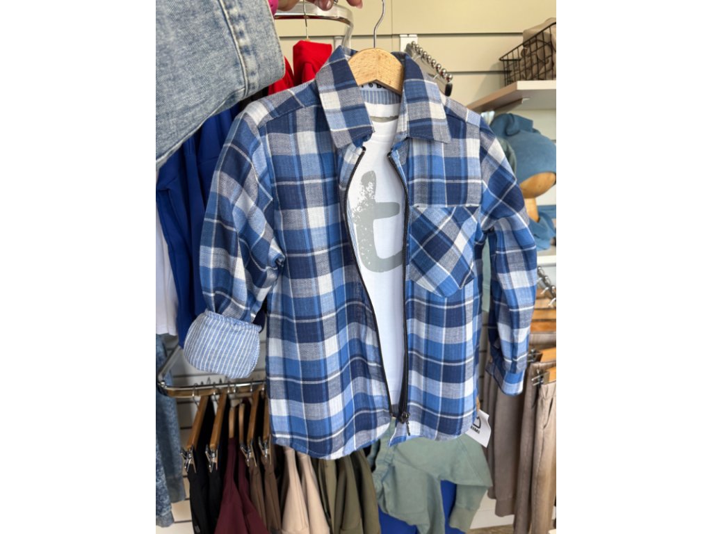 Káro-košeľa na zips pre chlapcov
