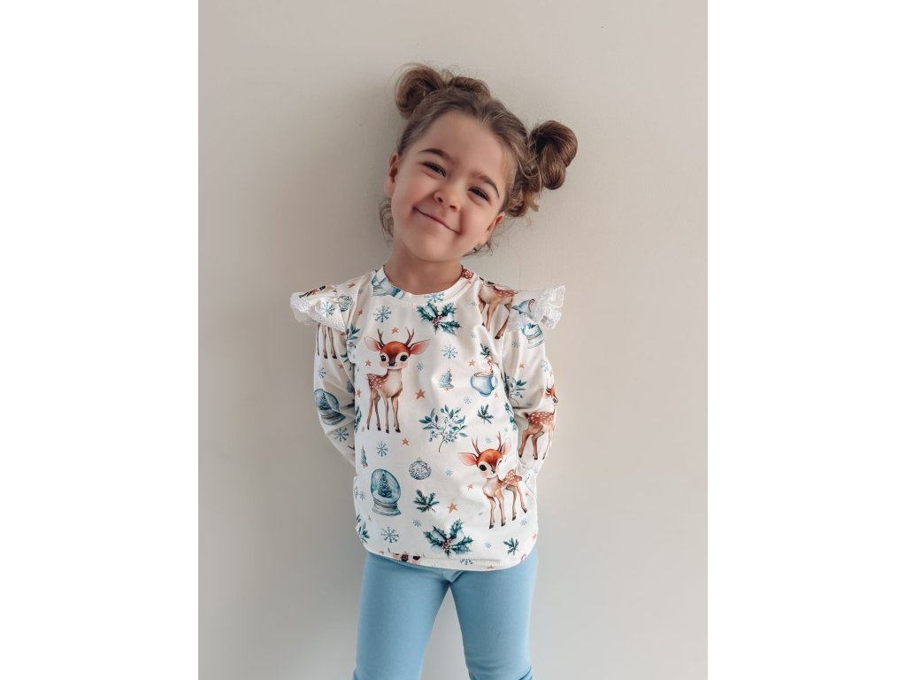 Tričko s volánikmi a unikátnou zimnou potlačou rozžiaria nejednu parádnicu.