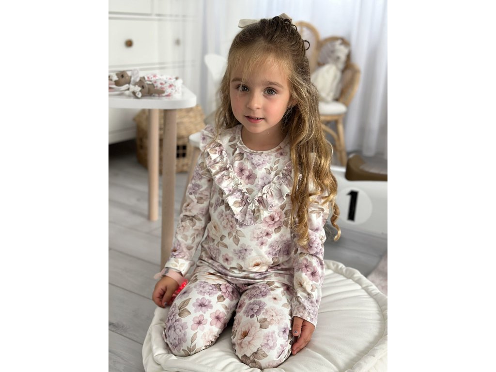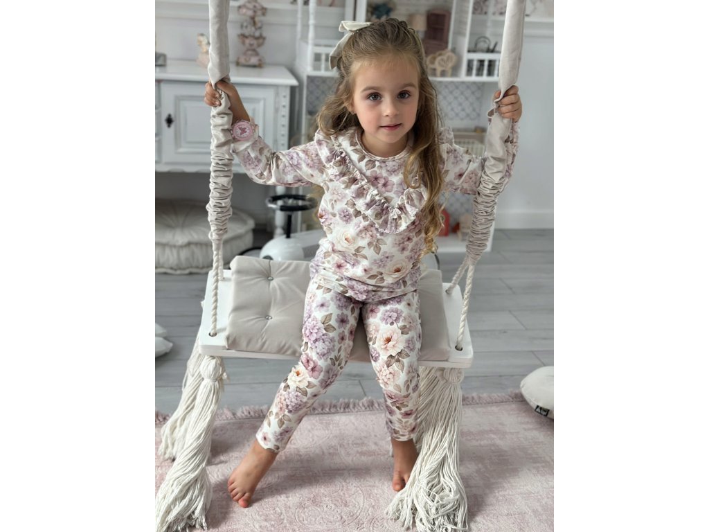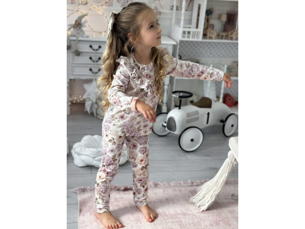 Jemnučký komplet v krásnej marhuľovej farby z dielne Zulahandme. Tričko s dlým rukávom a ozdobným volánom a legínky s mašľou. Zloženie: bavlna 95%, elastan 5%