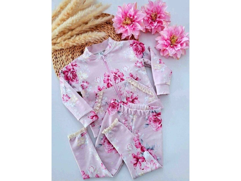 Jemnučký komplet v krásnej marhuľovej farby z dielne Zulahandme. Tričko s dlým rukávom a  ozdobným volánom a legínky s mašľou.   Zloženie: bavlna 95%, elastan 5%