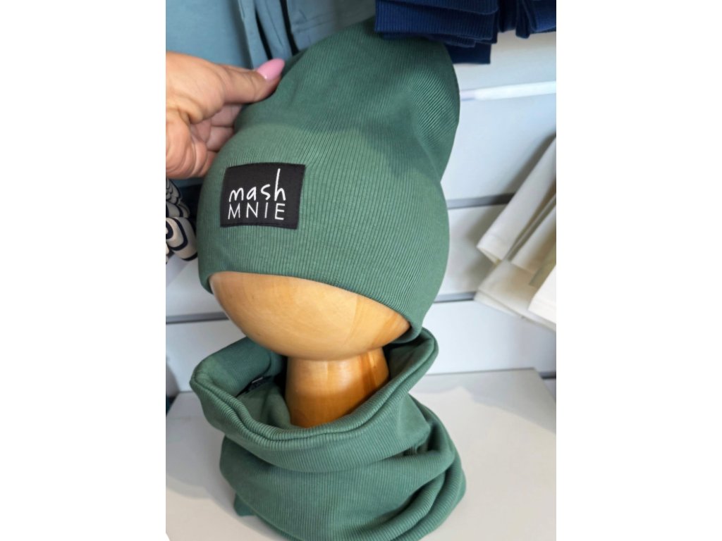 Dvojvrstvová čiapka a šatky z rebrovanej bavlny – teplý, pohodlný a štýlový outfit na chladnejšie dni.