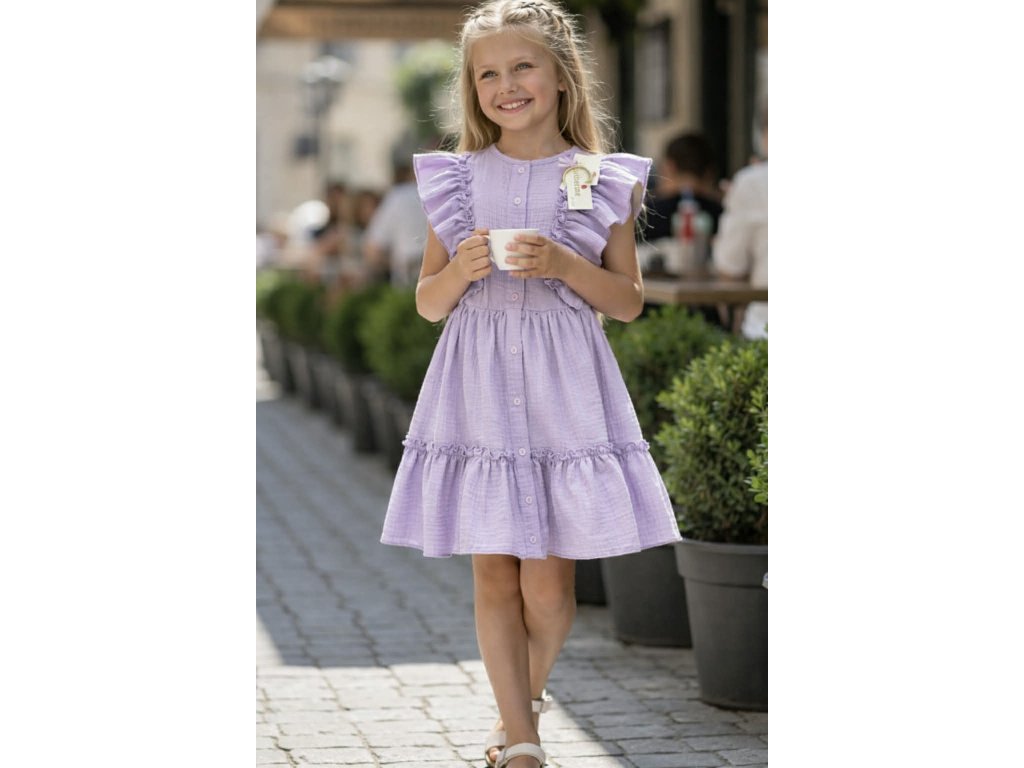 Mušelínové šaty pre dievčaká - fialová