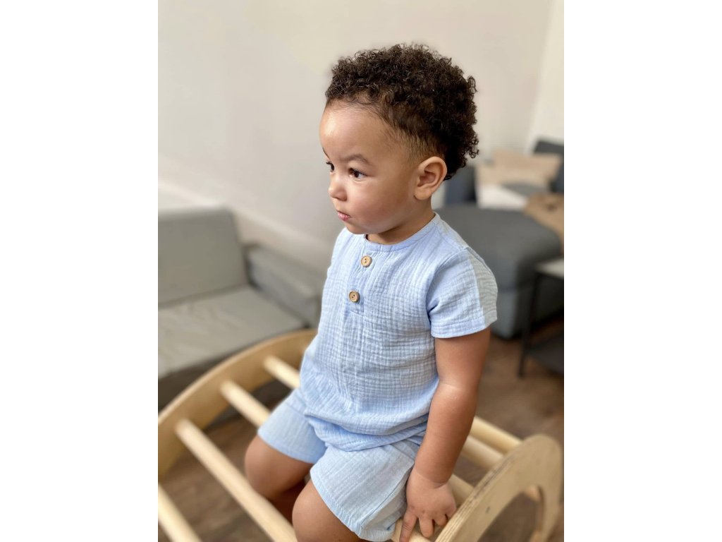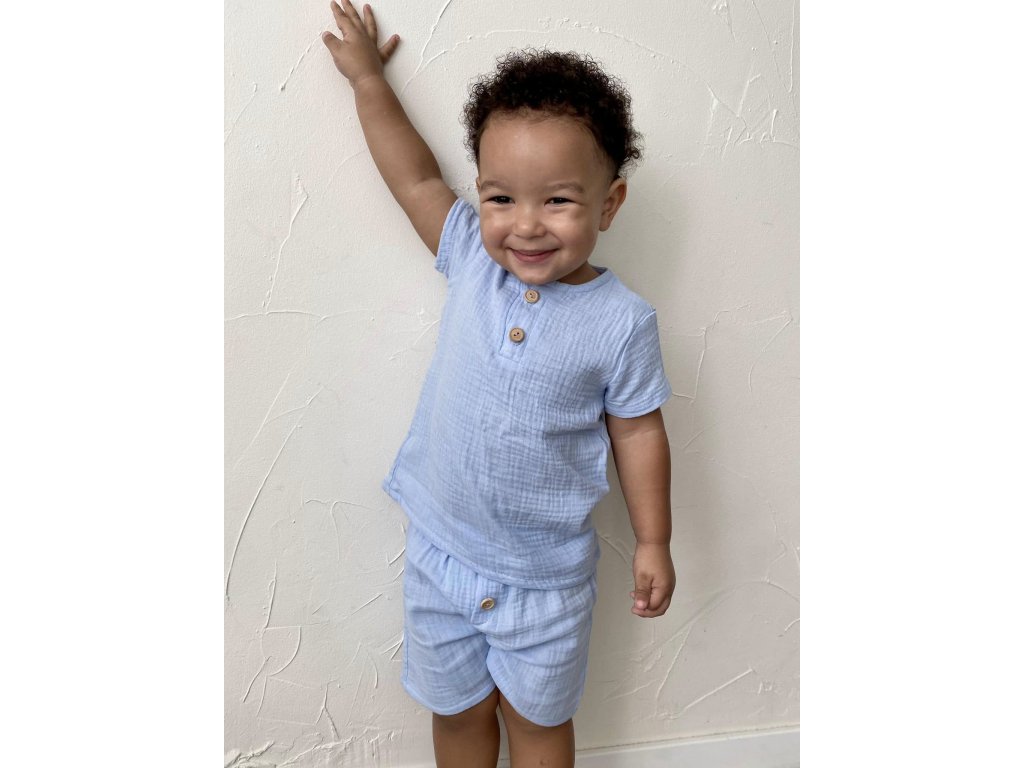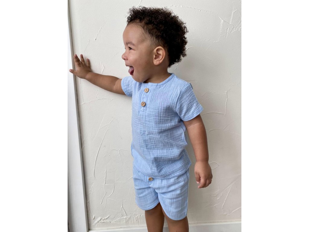 Mušelínový komplet pre chlapcov je proste letný MUST HAVE