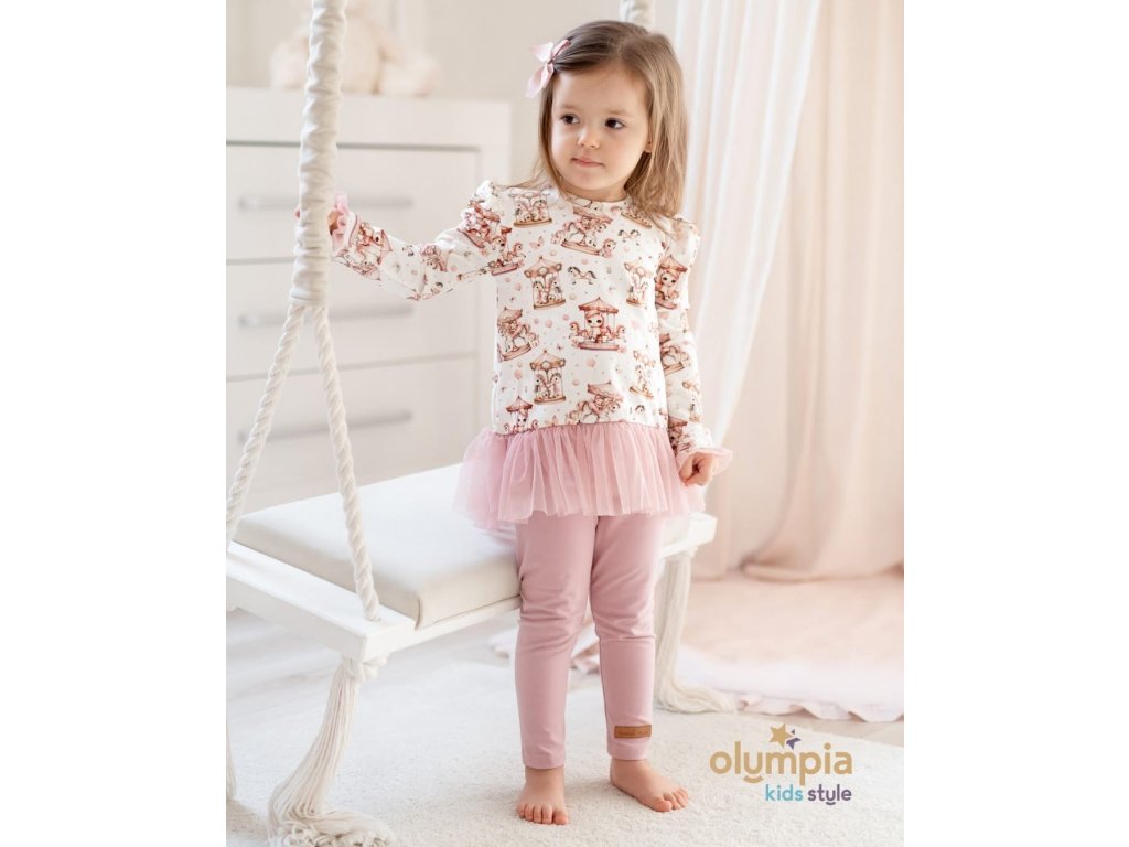 Dievčenský komplet s poníkmi - tunika a legínky s tylom