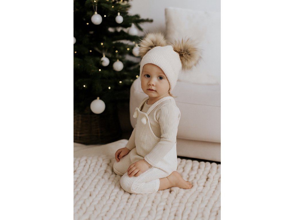 Roztomilé detské pletené trakáče v bielej farbe - mäkučké, hrejivé a pohodlné.