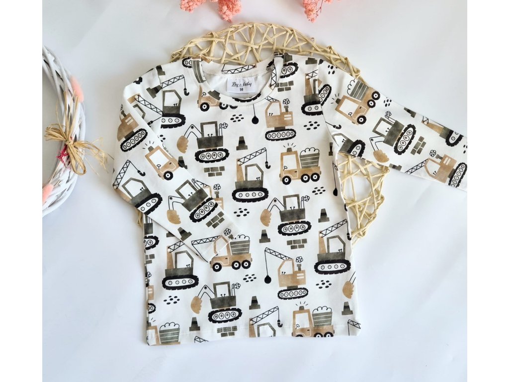 Tričko s dlhými rukávmi z mäkkého bavlneného džejsera s potlačou pracovných strojov.
