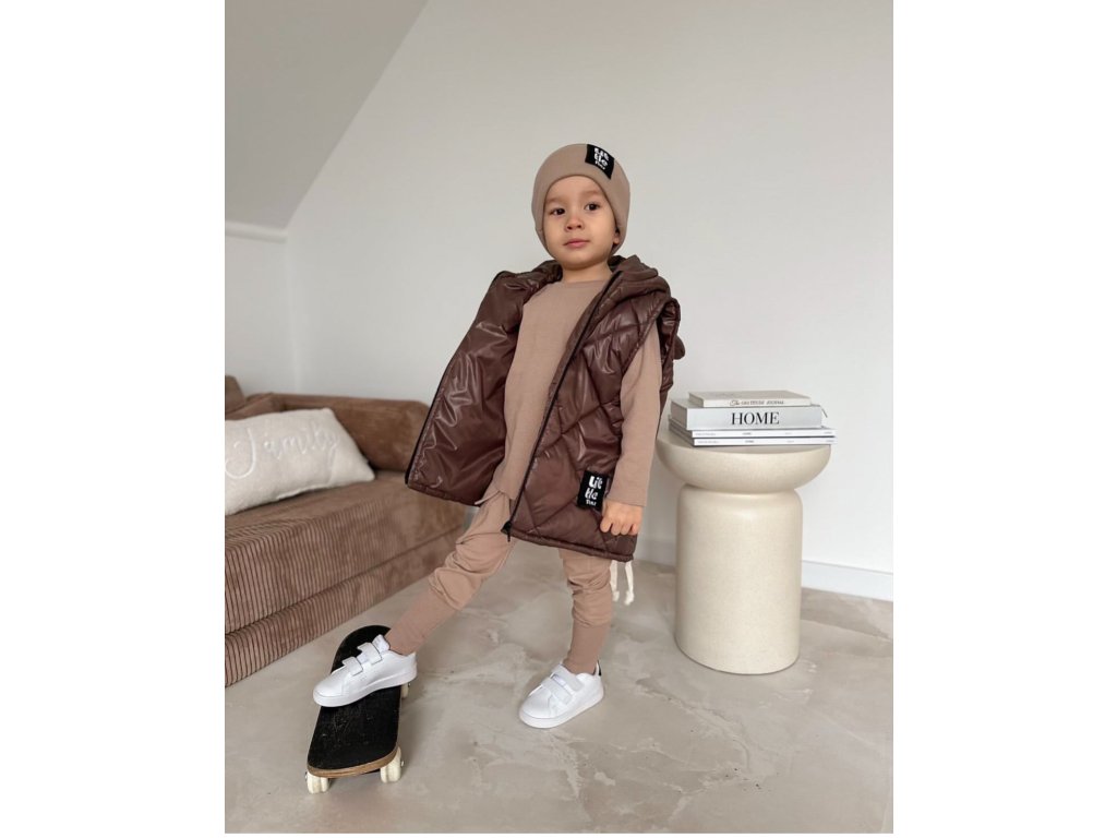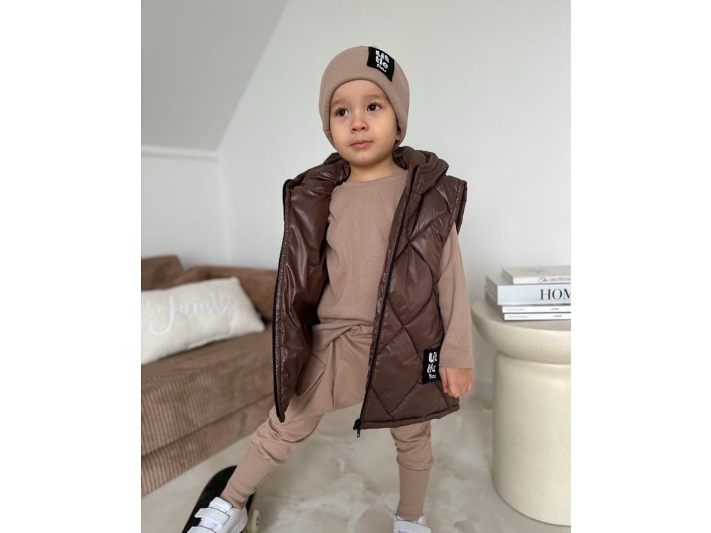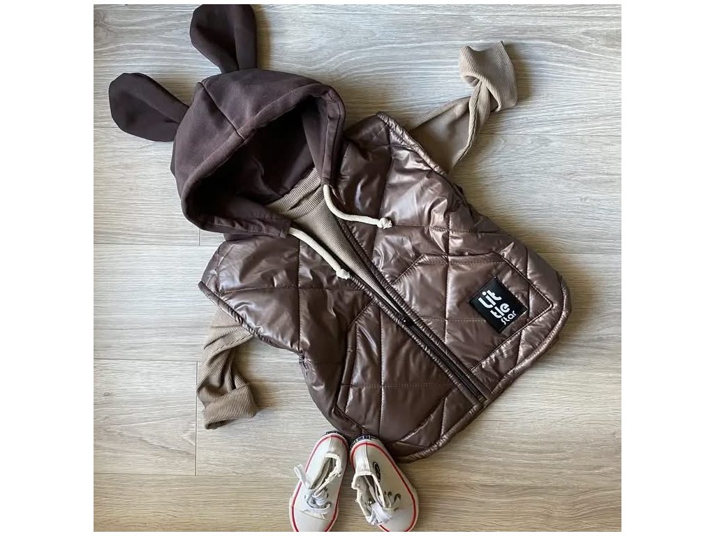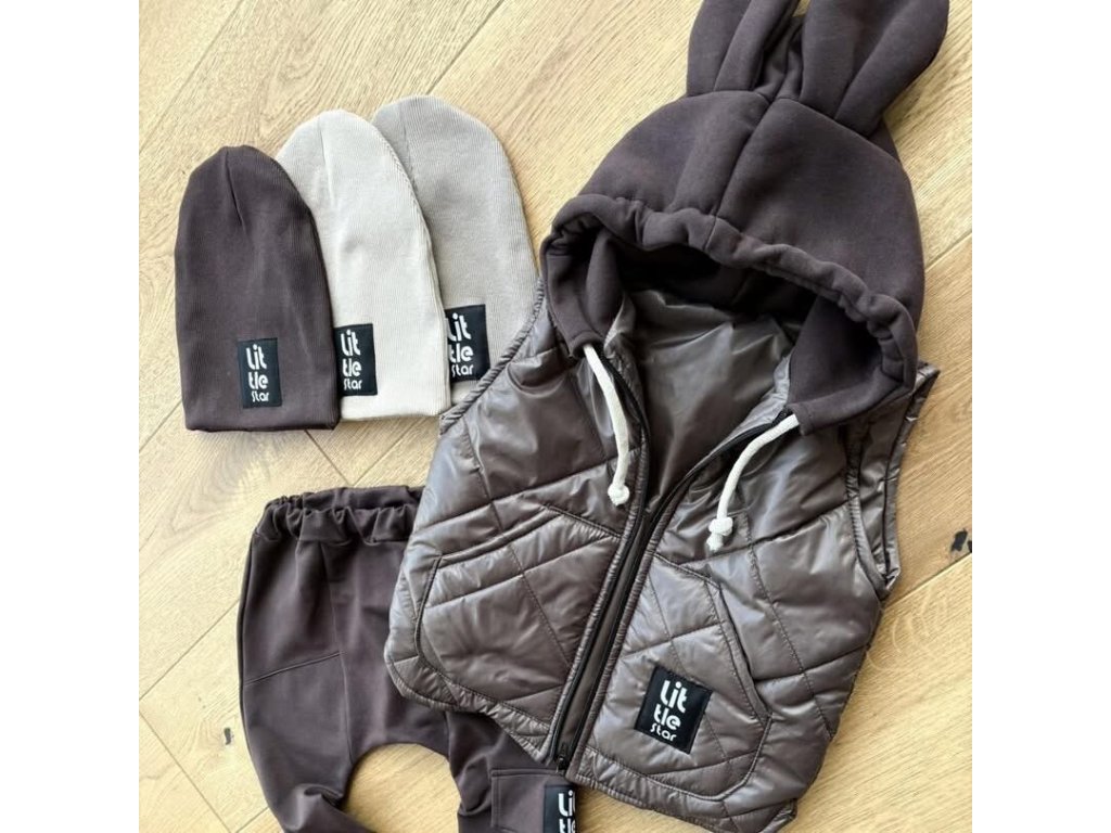 Detská vesta Little Star s uškami – handmade vesta čokoládová (86–140)
