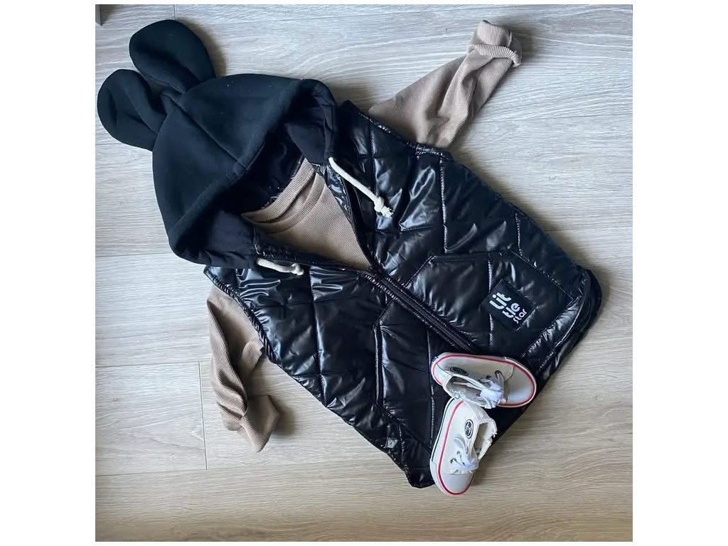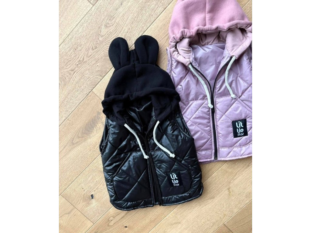 Detská vesta Little Star s uškami – handmade vesta čierna (86–140)