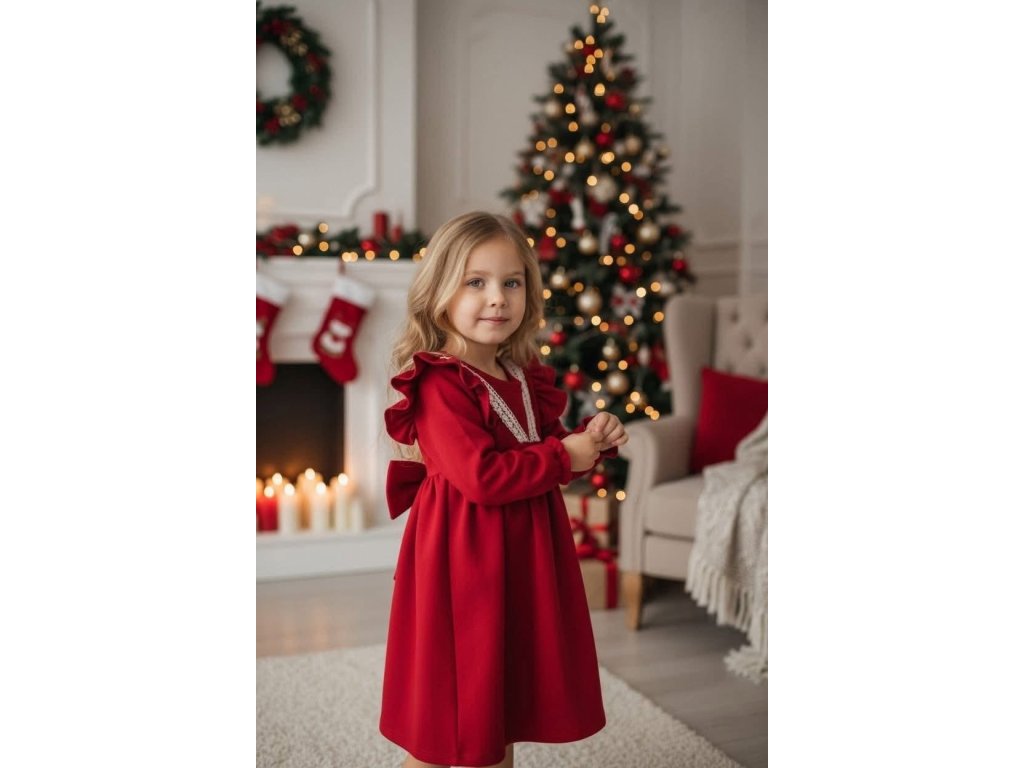 Rozkošné a elegantné dievčenské šaty v krásnej červenej farbe.