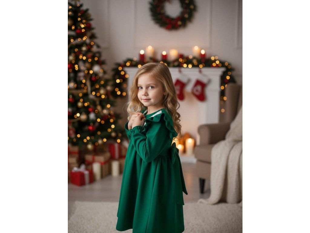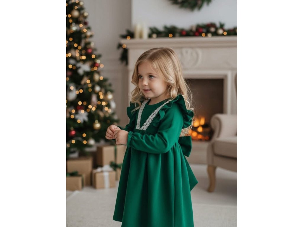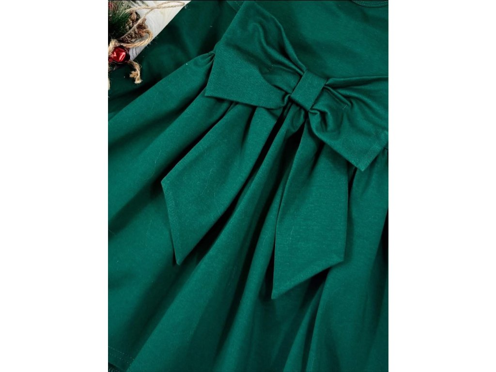 Smaragdo-zelená šaty pre dievčatá s mašľou