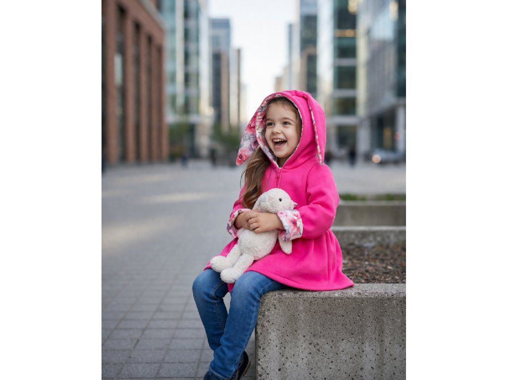 Kabátik so zajko uškami, ktorý poteší a zohreje každú malú slečnu. Mierne rozšírený strih do A pôsobí veľmi dievčensky. Kabátik je ozdobený mašličkami vo farbe podšívky, ktorý...