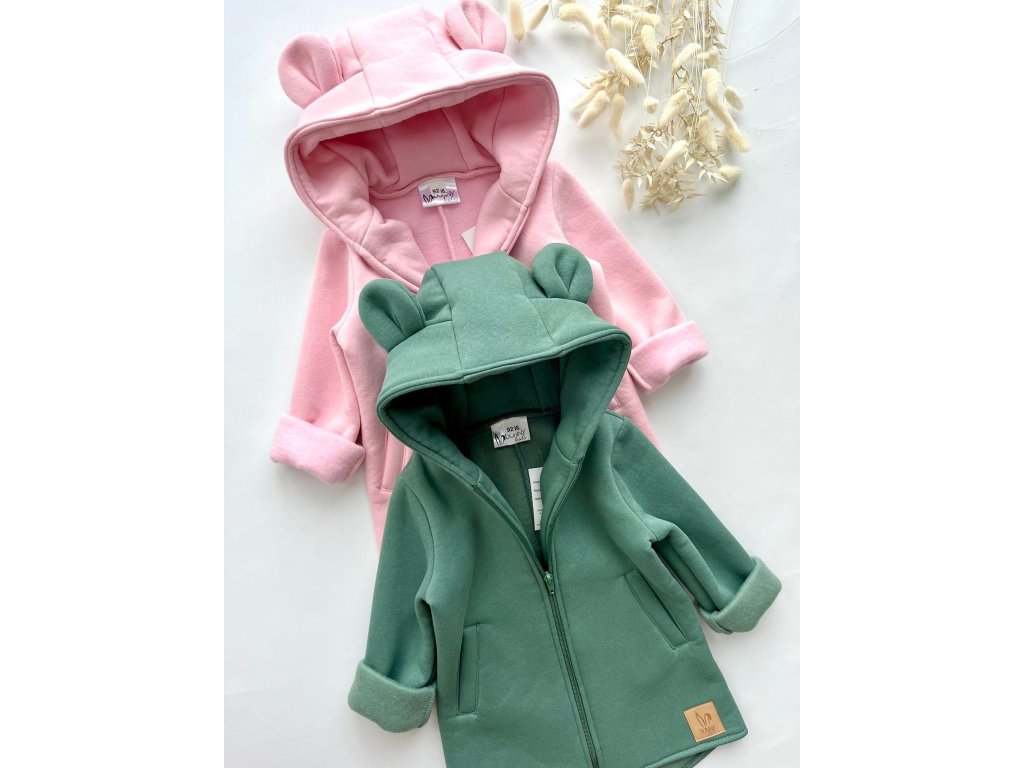 Zateplená mikina s uškami zelená